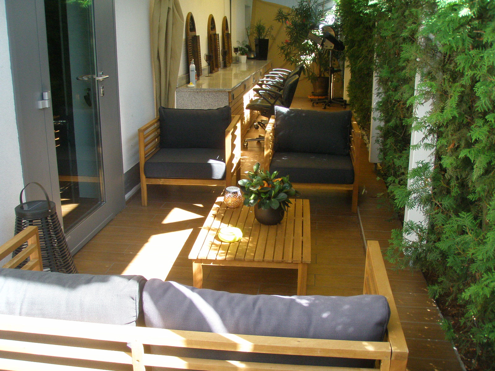 Klein aber fein, sind unsere neuen Außen Bedienungsplätze mit Wartelounge.